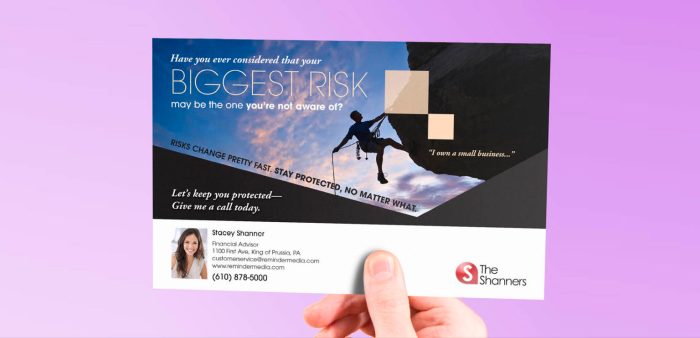 - Ensure that the design of the direct mail pieces reflects the professionalism and credibility of your financial or insurance services.